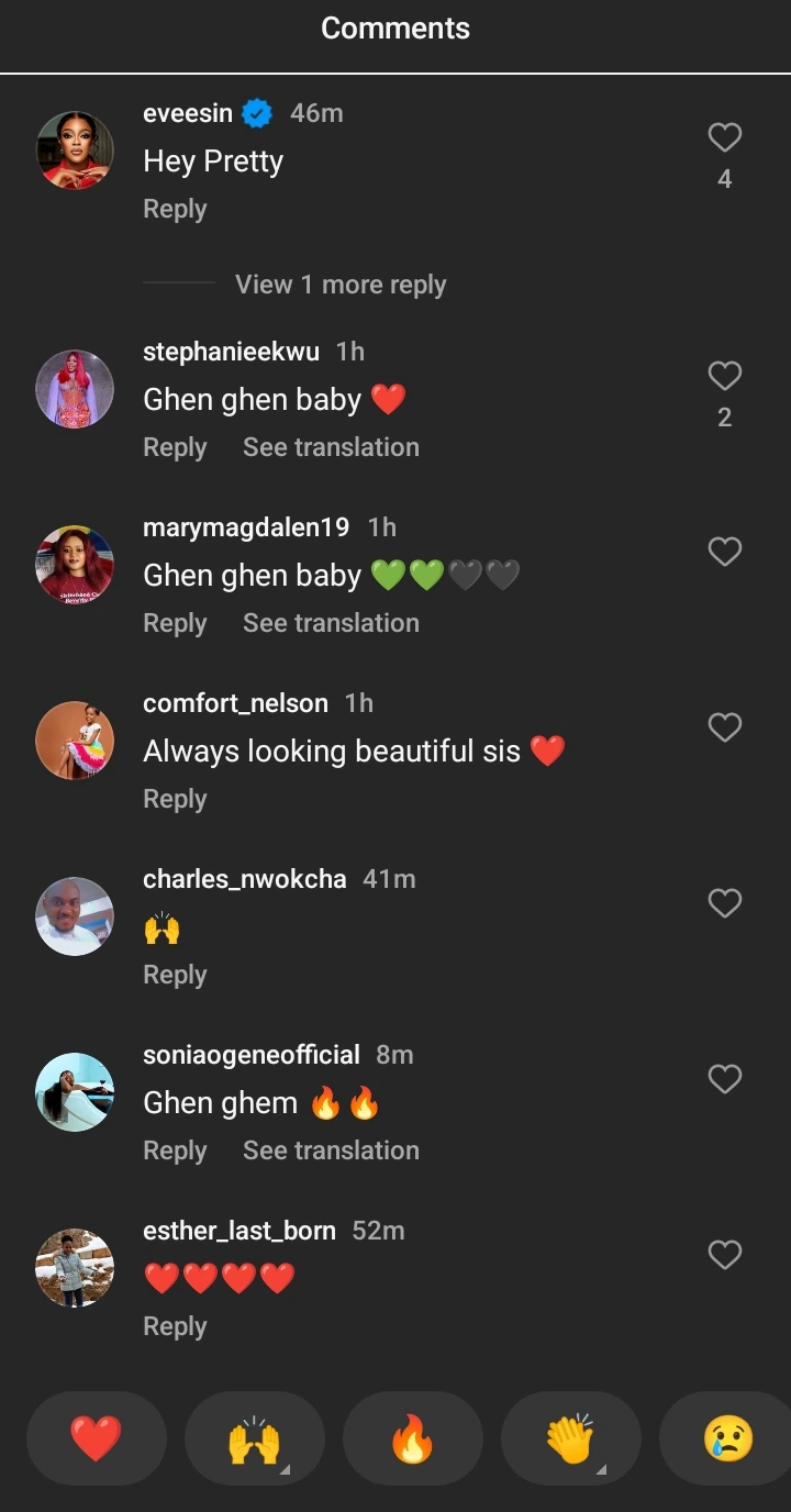 Nevertheless, numerous reactions were triggered by fans in the comment section. Some of the fans were so excited to the extent of even reacting with lovely words and charming emojis. Below is a screenshot showing fans' reactions to Lizzygold Onuwaje's post on Instagram.